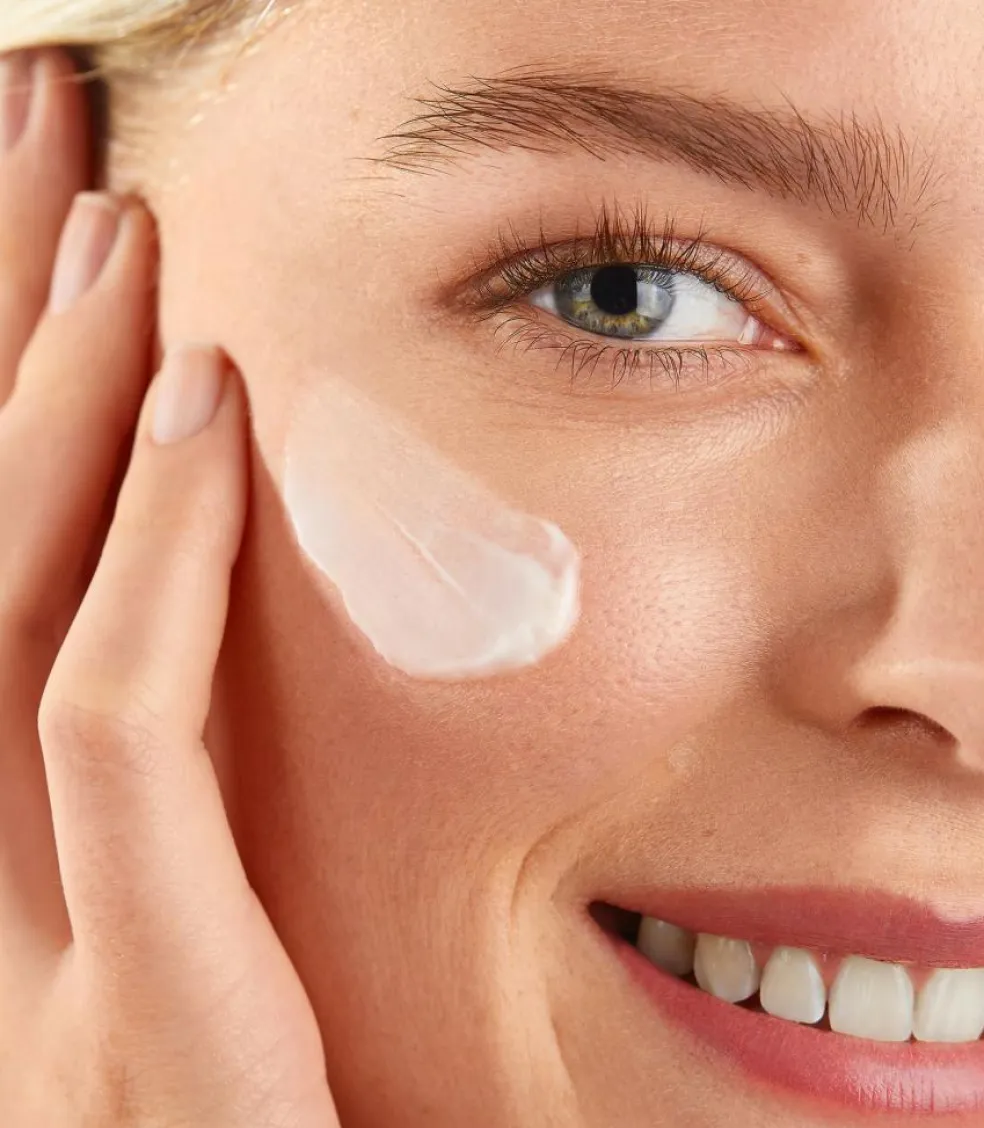 - Hyaluronsyre, der binder fugten i huden, så den bedre kan holde sig gennemfugtet i løbet af dagen. Hyaluronsyren bidrager til at holde huden smidig og elastisk samtidigt med at give huden fylde, så fine linjer med tiden fremstår mindre.