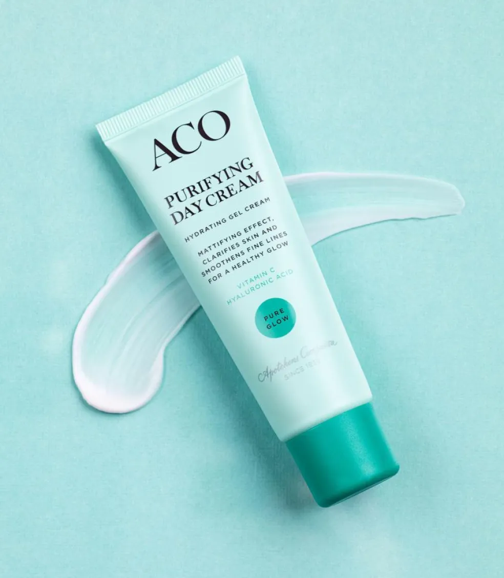 Hvis du døjer med urenheder og har tendens til hud som skinner, kan du med fordel bruge ACO’s Purifying Day Cream, der har en matterende effekt. Din hud får et mindre fedtet udseende og porerne bliver mindre synlige, så din hud fremstår mere jævn og ’glat’ i overfladen.