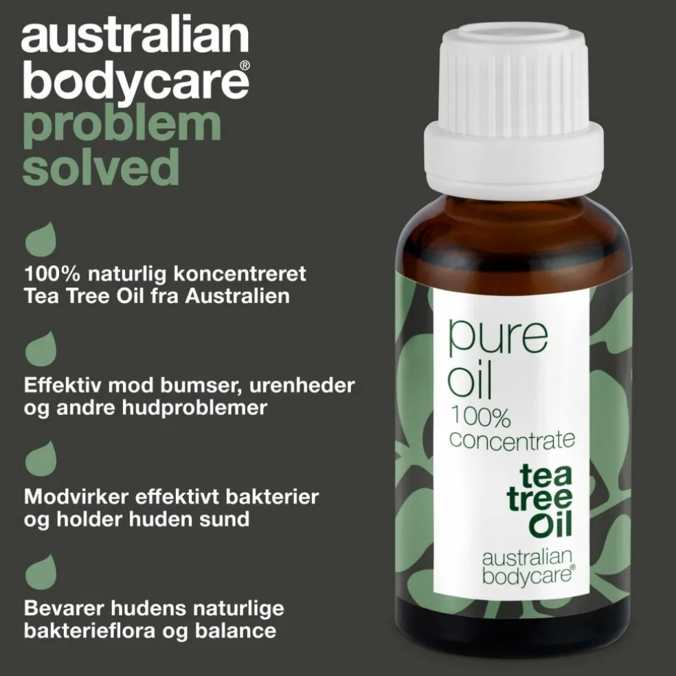 Tea Tree Oil er kendt for at modvirke bakterier og kan derfor bruges til en lang række hudproblemer. Olien bidrager samtidig til at bevare hudens naturlige bakterieflora, så den holdes ren og sund.