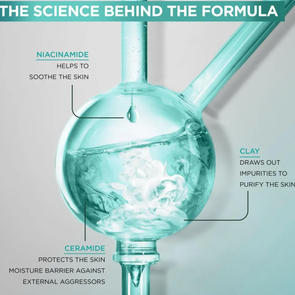 - Beriget med [NIACINAMID + SALICYLSYRE + LER + CERAMID]