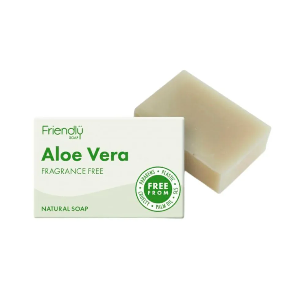 Her får du en skøn 100 % naturlig sæbe med Aloe Vera fra engelske Friendly Soap. Den vejer 95 gram og giver et rigtigt lækkert skum. Sæben er særligt egnet til følsom hud.