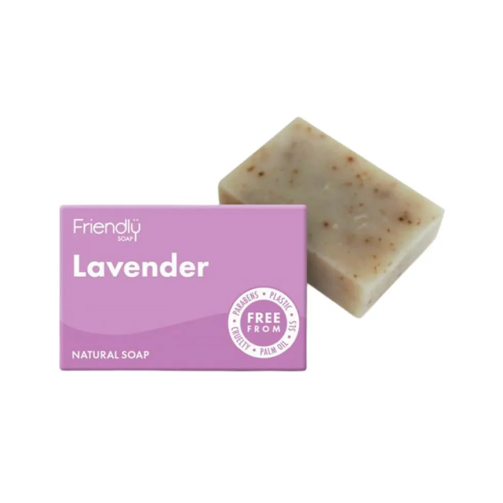 Her får du en skøn 100 % naturlig sæbe med Lavendel fra engelske Friendly Soap. Den vejer 95 gram og giver et rigtigt lækkert skum.