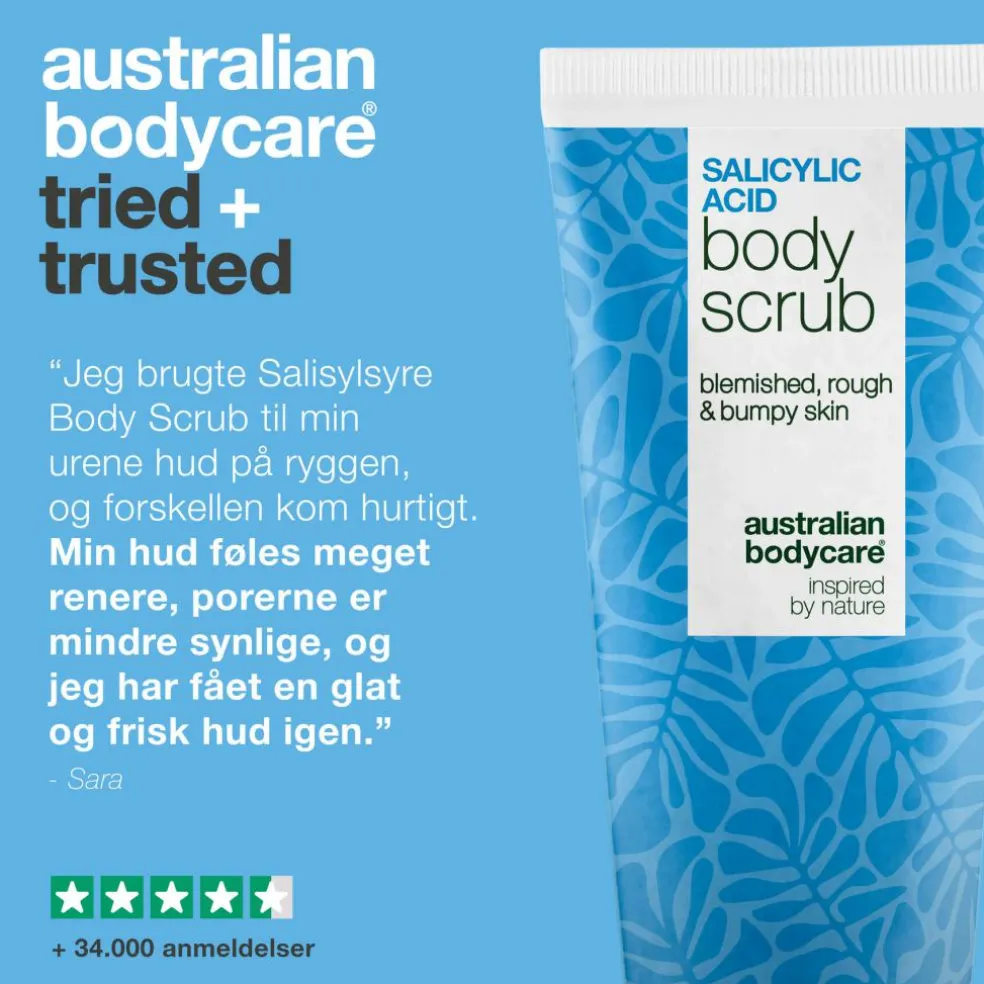 Body Scrub med Salicylsyre fra Australian Bodycare er skræddersyet til kropshuden og er din ideelle løsning til at:
