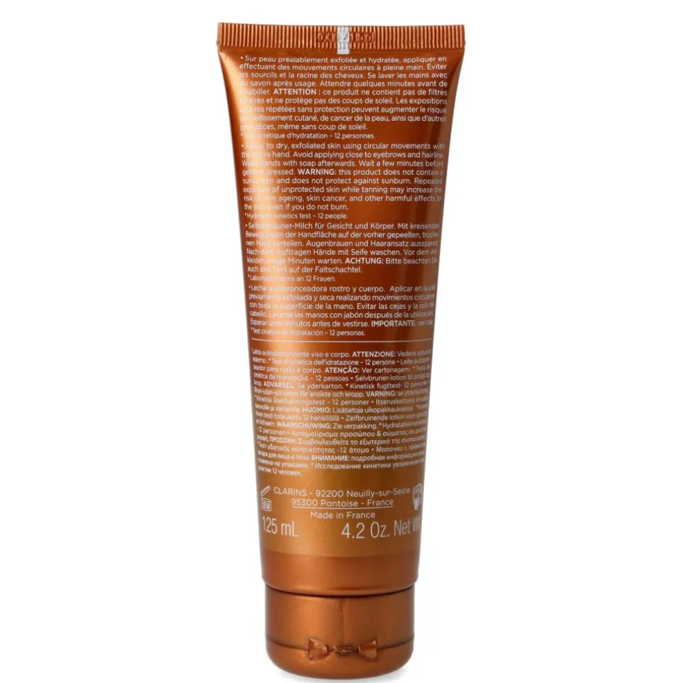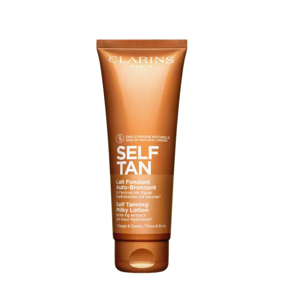 Derudover er Clarins Self Tanning Milky-Lotion beriget med blandt andet figen ekstrakt og aloe vera, der har en fugtgivende og blødgørende effekt på huden, som bidrager til en langtidsholdbar og uimodståelig gylden glød.