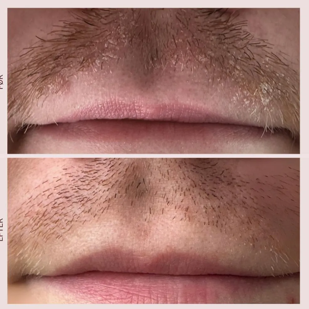 Ligesom vi kan få skæl i hovedbunden, så kan vi få skæl i ansigtet. Huden har især tendens til at skælle omkring næsen, panden, øjenbryn og i skægget. Det er nemt at tro, at skællene er tør hud, men problemet skyldes en overvækst af gærsvampen malassezia furfur og sidder ofte de steder i ansigtet, hvor vi har mere fedtet hud – for eksempel i næsefløjene og panden.