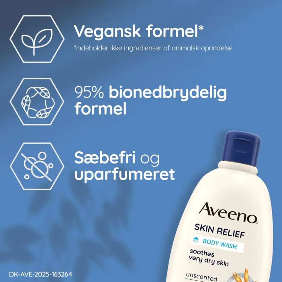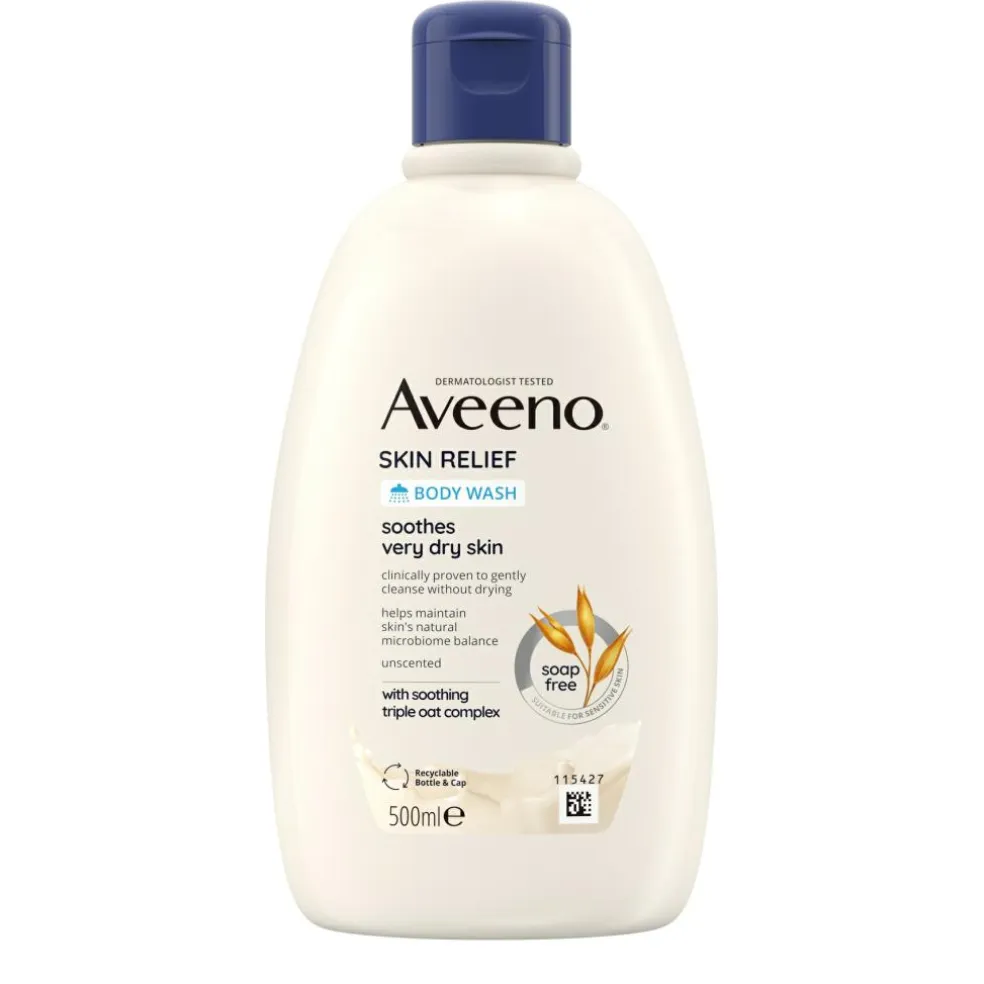 Når Aveeno® Skin Relief Moisturising Body Wash bruges som en del af en hudplejerutine sammen med Aveeno® Skin Relief Lotion med beroligende tredobbelt havrekompleks , hjælper det med at forbedre balancen i hudens naturlige mikrobiom.