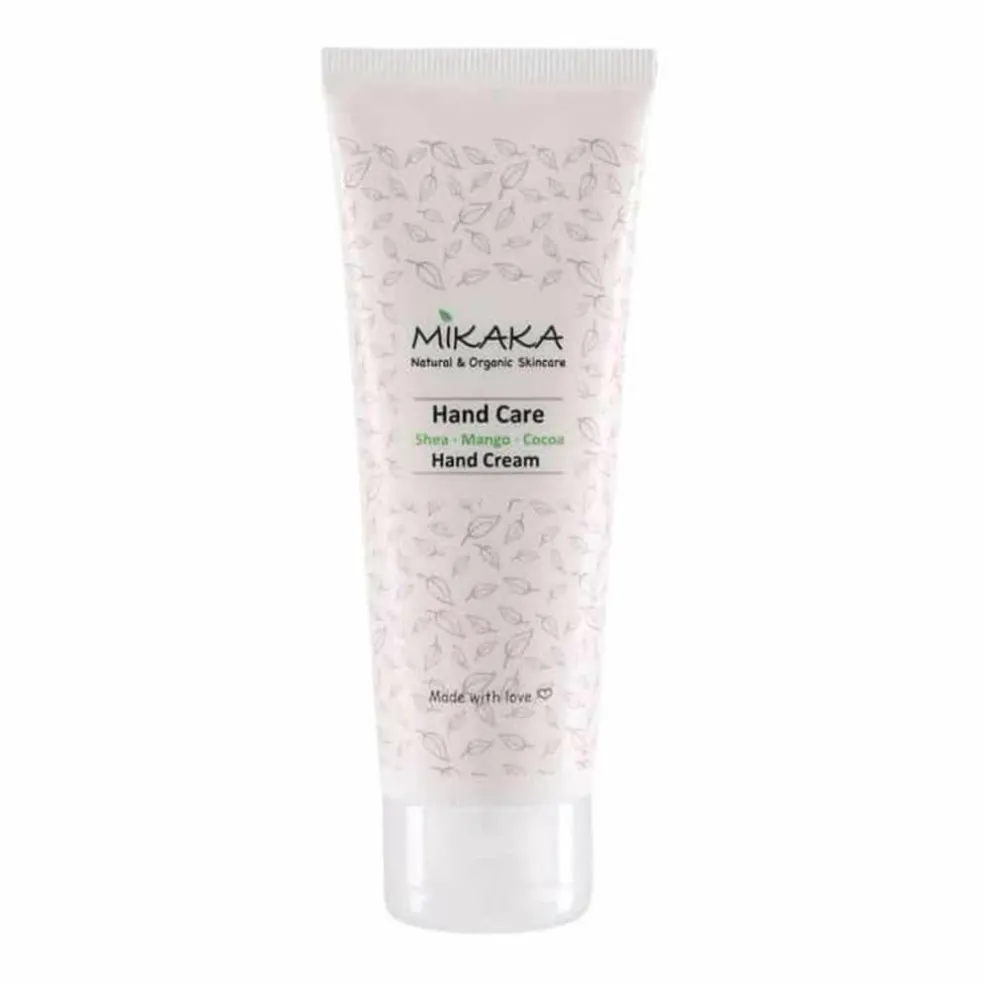 Fugtgivende og nærende håndcreme fra det danske brand Mikaka. Cremen er beriget med sheasmør, mangosmør, kakaosmør og kokosolie, som plejer og blødgør huden.