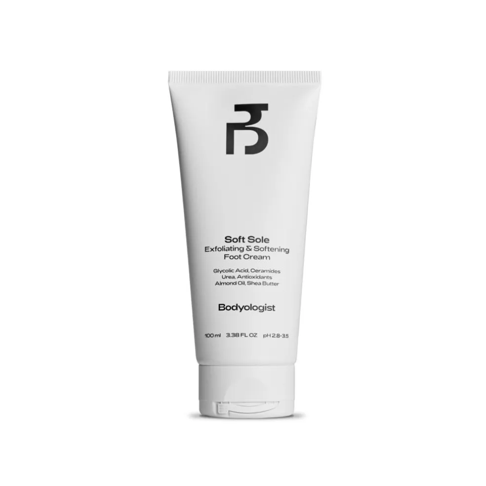 Soft Sole er formuleret med eksfolierende glykolsyre og carbamid, der både reducerer og forebygger dannelsen af hård hud, mens ceramider, glycerin og sheasmør fugter, blødgør og hydrerer huden og holder fødderne beskyttede og velplejede.