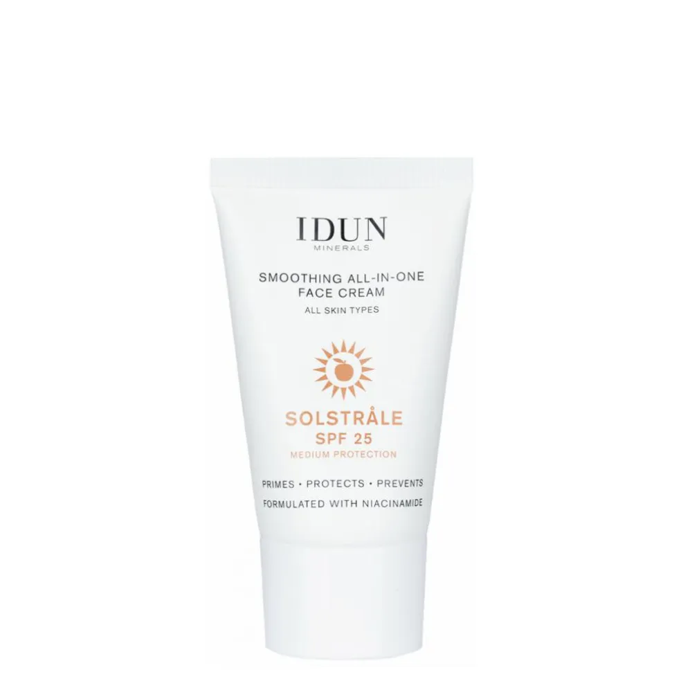 IDUN Minerals Solstråle SPF 25 er en blødgørende ansigtscreme, solcreme og primer i et.