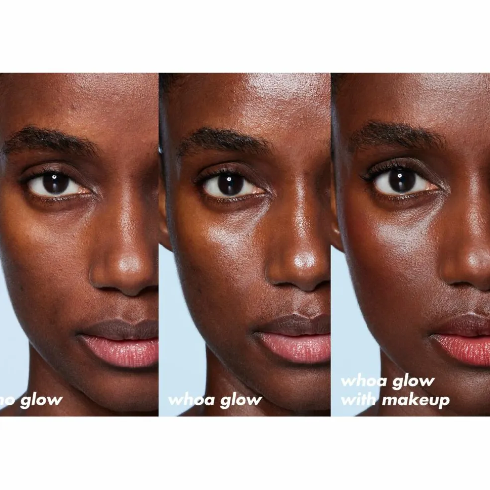 Whoa Glow SPF 30 er en letvægts solcreme og primerhybrid til ansigtet, der giver bredspektret SPF 30-solbeskyttelse, forbereder din hud til langvarig makeup og giver en glødende, gennemsigtig finish.