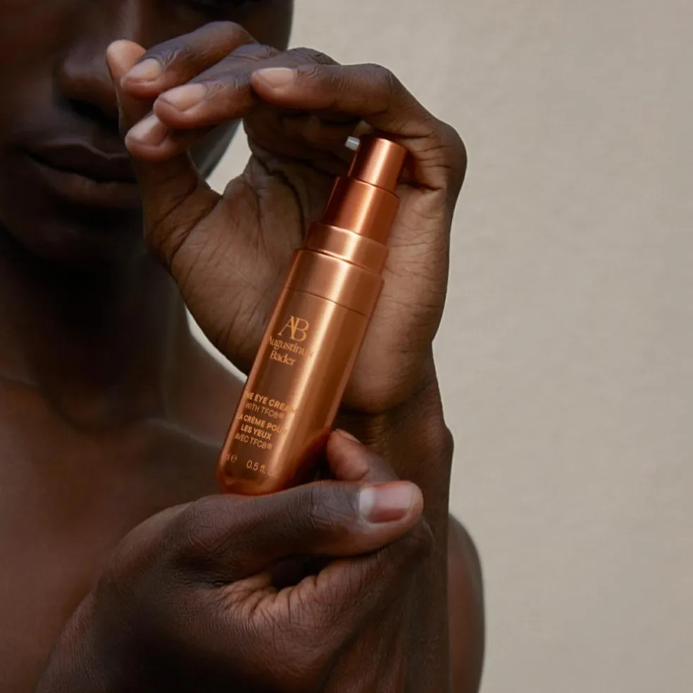 Brug fingerspidserne til forsigtigt at påføre The Eye Cream i en halvcirkel rundt om øjnene – fra det inderste hjørne under øjet (fra næseryggen) til det yderste hjørne og derefter op under brynbenet.
