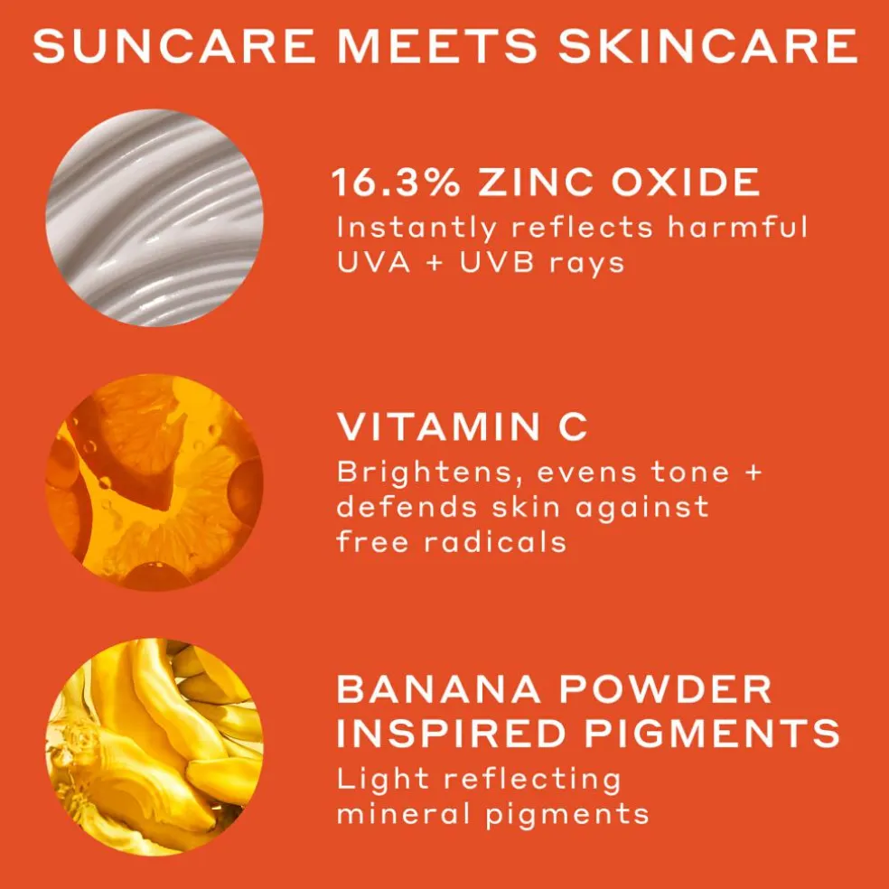 - Solcremen kombinerer bredspektret mineralsk SPF 30, C vitamin og lysreflekterende mineralske pigmenter, så huden beskyttes og korrigerer trist og uens hudtone hen over tid