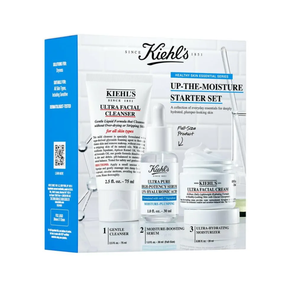 Dette team af fugtgivende hudplejeprodukter fra Kiehl’s hjælper med at holde huden fugtet med vores skånsomme ansigtsrens, koncentrerede 1,5% hyaluronsyreserum og vores nærende 24-timers fugtgivende ansigtscreme.