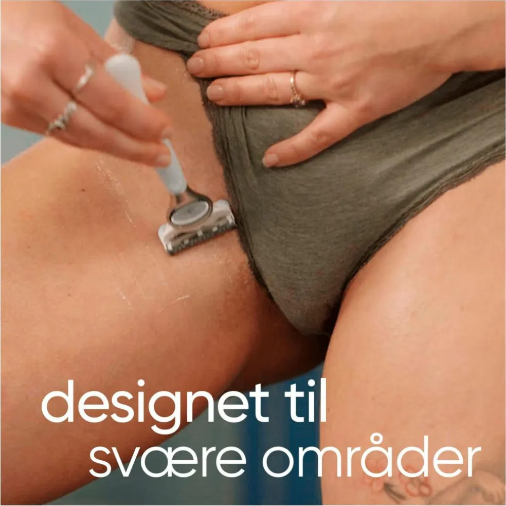 Desuden er barberbladsrefillerne udstyret med en præcisionstrimmer bag på bladene, der hjælper i besværlige områder.