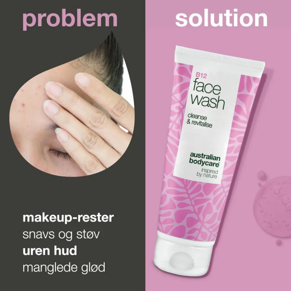 For de bedste resultater anbefaler vi at bruge B12 Face Wash sammen med andre produkter fra Australian Bodycare B12-serien.