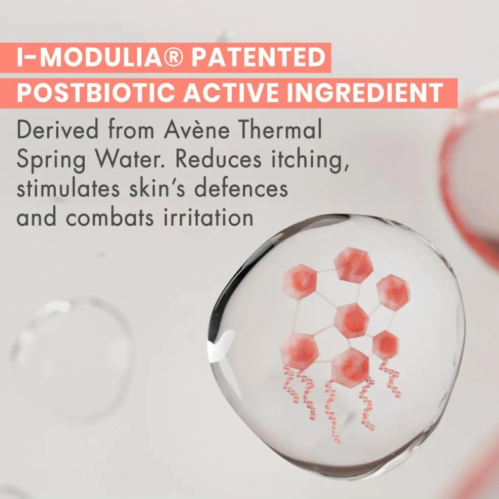 - I-modulia®: Patenteret postbiotisk aktiv ingrediens fra Avène Termalkildevand. Mindsker kløe, stimulerer hudens forsvar og modvirker irritation