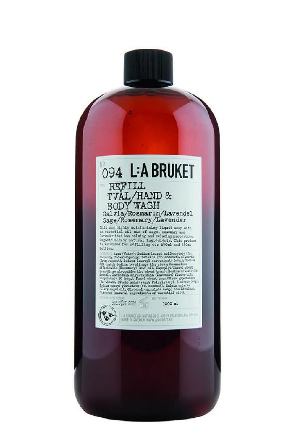 Sæben er beriget med æterisk olie af salvie, rosmarin og lavendel, som har balancerende og beroligende egenskaber, der samtidig forkæler sanserne med en afslappet og aromatisk duft.