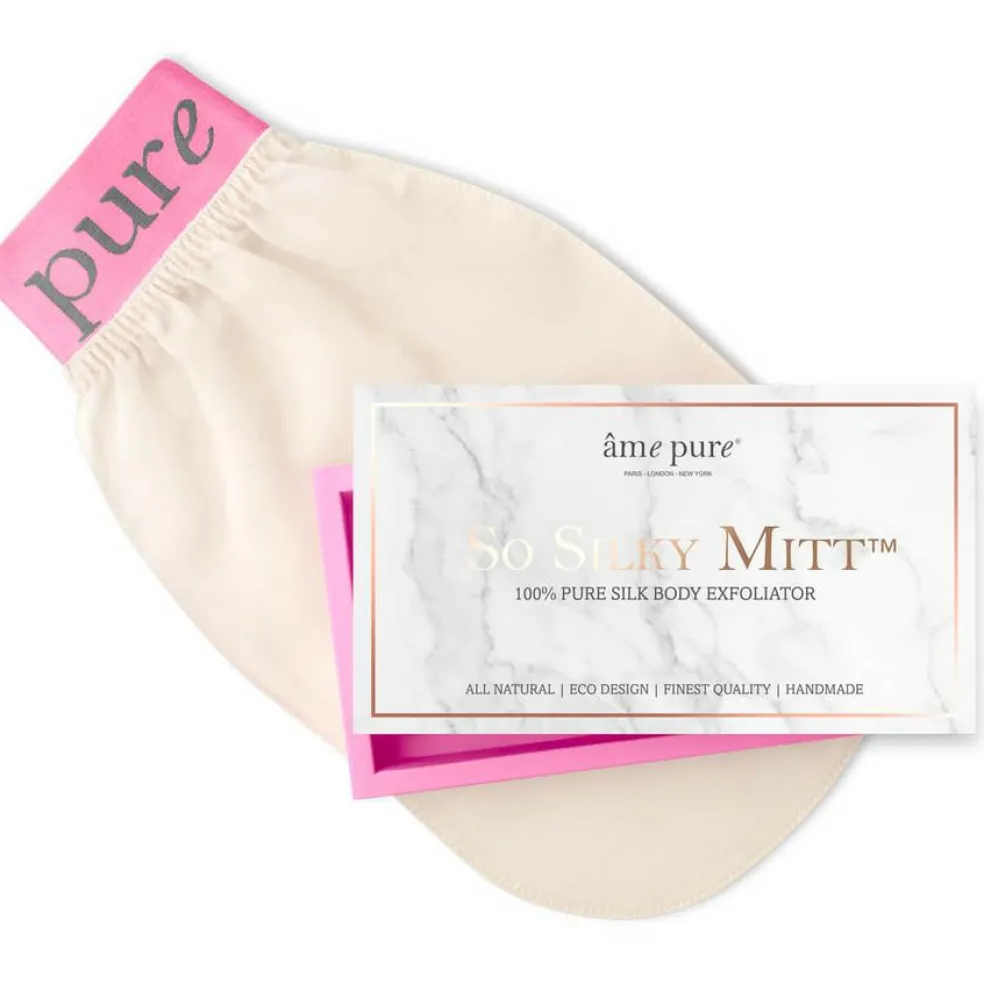 So Silky Mitt er lavet af 100% naturlig silke, og du behøver ikke sæbe eller anden form for skrub. Handsken og vand er nok i sig selv!