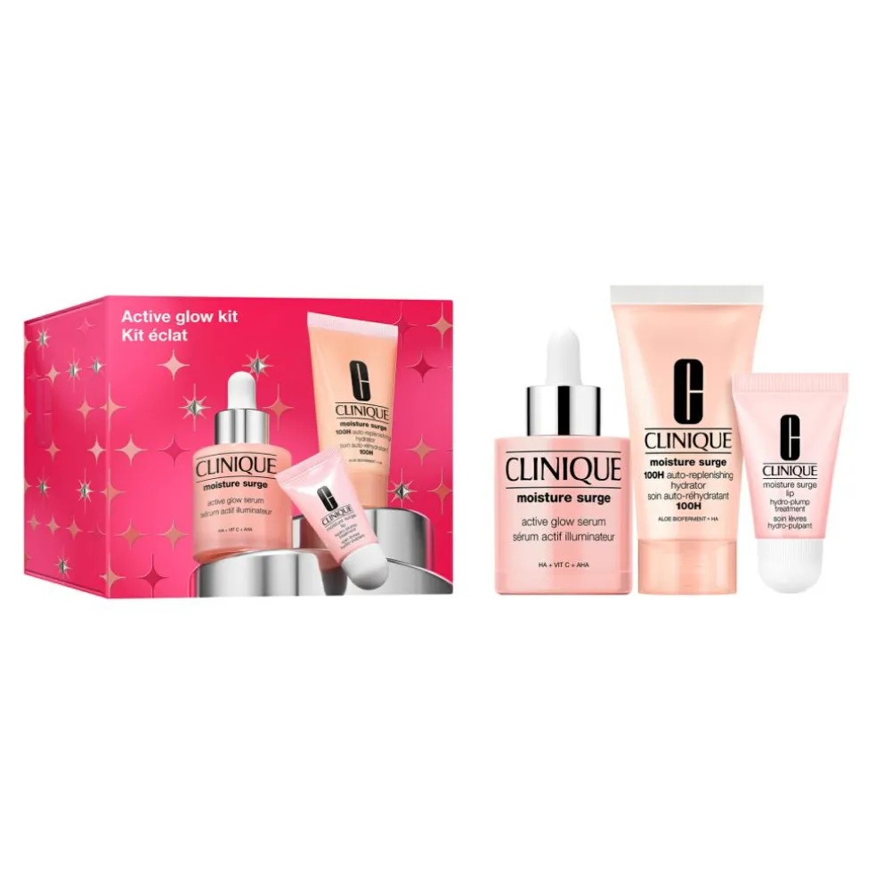Clinique Active Glow Gaveæske er den perfekte julegave til dig selv eller en du holder af. Denne trio af Cliniques populære og fugtgivende produkter giver en strålende hud, og spreder julestemning med sin skønne sammensætning af ansigtscreme, ansigtsserum og læbepleje.