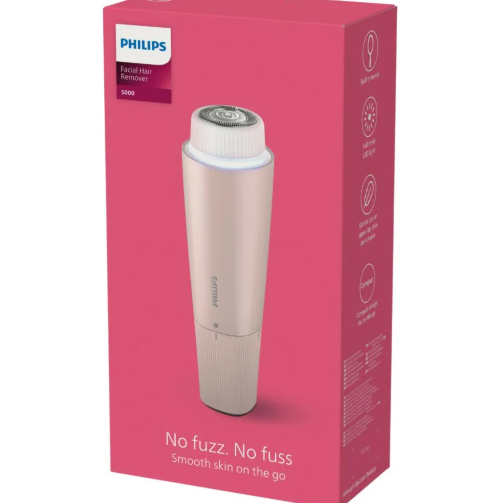 Oplev hurtigere hårfjerning med Philips Ansigtshårfjerner 5000. Specielt designet til kvinder, fjerner denne enhed nemt de fineste hår på overlæben, hagen, kinderne og kæbelinjen, hvilket giver dig en glat og fejlfri hud.