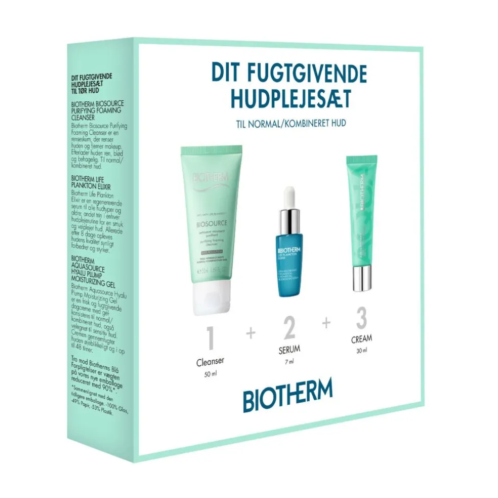 For at opnå den bedste effekt med dit Biotherm-sæt, følg disse enkle trin morgen og aften: Start med at fugte ansigtet med lunkent vand, skum derefter Biosource Purifying Foaming Cleanser op i hænderne og massér den ind i huden for at rense og fjerne makeup; skyl grundigt og dup huden tør. Påfør derefter 3-4 dråber af Life Plankton Elixir BioSerum jævnt over ansigt og hals for at forny og forbedre hudens alderstegn.