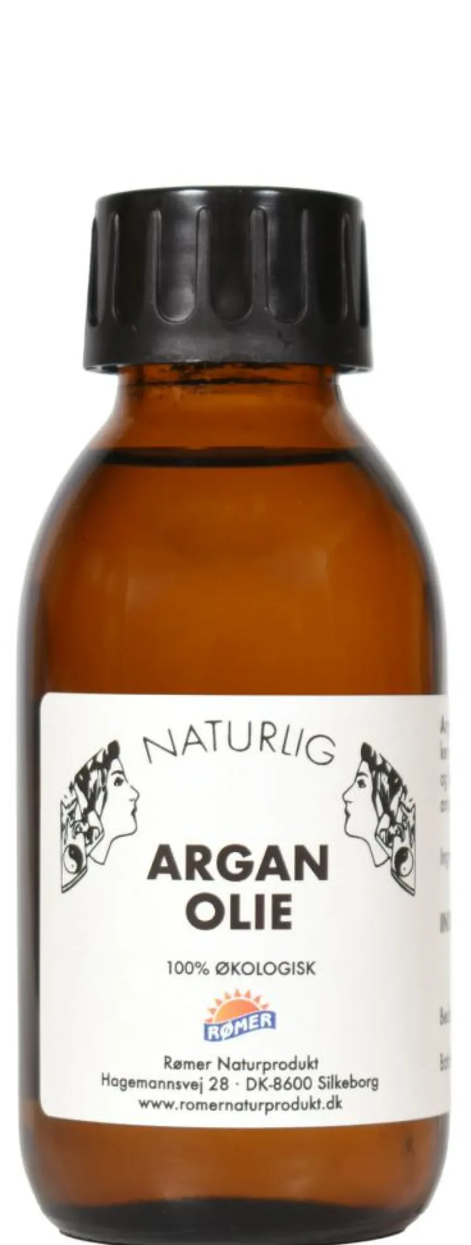 Rømers Argan olie lægger en silkeblød beskyttelse, er god til tør hud, hår og skader forårsaget af sol, kulde m.m. Argan olie gør huden blød og smidig. Argan træet vokser hovedsageligt i det sydvestlige Marokko. Træet er 3-4 meter højt med tornede grene, olien udvindes fra træets frugt kerner, som tager op til 1 år om at modnes (kernerne fra 100 kg frugt giver 2-3 liter olie).
