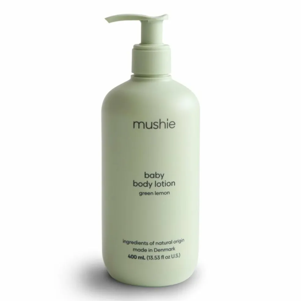 Mushie Baby Lotion Green Lemon 400 ml – Frisk og Nærende Hudpleje til Din Baby Giv din baby en forfriskende og nærende oplevelse med Mushie Baby Lotion Green Lemon – en skånsom lotion, der både fugter, plejer og beskytter dit barns sarte hud. Denne baby body lotion har en let og frisk duft af citron, som giver en behagelig oplevelse ved hver påføring, samtidig med at den sikrer optimal pleje for dit barns hud. Naturlige Ingredienser for Silkeblød Hud Mushie Baby Lotion Green Lemon er beriget med naturlige ingredienser, der giver huden den bedste pleje. Cremen indeholder sheasmør, kendt for sine dybt fugtgivende og beskyttende egenskaber, samt abrikoskerneolie, som hjælper med at blødgøre og nære huden. Disse ingredienser sikrer, at dit barns hud efterlades silkeblød, sund og velplejet. Frisk Duftsensation Den lette Green Lemon duft med en frisk citrusnote giver en naturlig og dugfrisk følelse på huden. Denne duftoplevelse kombinerer en fornemmelse af friskhed med den pleje, huden har brug for, og efterlader dit barns hud blød, hydreret og let duftende af citron. Daglig Pleje til Hele Kroppen Denne lotion er velegnet til daglig brug på hele kroppen. Den lette og hurtigt absorberende formel sikrer, at lotionen trænger hurtigt ind i huden uden at efterlade en fedtet overflade. Mushie Baby Lotion Green Lemon er ideel til både morgen- og aftenrutiner, hvor den tilfører langvarig fugt og efterlader huden med en skøn, frisk duft af citron. Fordele ved Mushie Baby Lotion Green Lemon Frisk duft: En let og behagelig duft af citron, der gør plejen endnu mere fornøjelig. Naturlige ingredienser: Indeholder sheasmør og abrikoskerneolie, som fugter og plejer huden. Velegnet til daglig brug: Perfekt til daglig påføring på hele kroppen for blød og sund hud. Hurtigt absorberende: Trænger hurtigt ind i huden og efterlader ingen fedtede rester. Særlige ingredienser at fremhæve i Mushie Baby Lotion Green Lemon Kokosolie (Cocos Nucifera Oil): Kokosolie har fremragende fugtgivende og plejeegenskaber. Den er god til tør, kløende og sensitiv hud, da den danner en beskyttende film på huden. Desuden har den gode absorberende egenskaber. Sheasmør (Butyrospermum Parkii Butter): Sheasmør er en koldpresset, raffineret og lugtfri vegetabilsk fedtstof, rig på umættede fedtsyrer. Sheasmør har et særligt højt indhold af oliesyre, som er meget gavnligt for meget tør hud. Sheasmør har derfor en udtalt fugtgivende og blødgørende effekt. Desuden er sheasmør rig på “non-glycerid” stoffer som fytosteroler, der minder om kolesterol og anses for at være gode fugtgivende og hudberoligende ingredienser. Rapsolie: Rapsolie er en nærende olie med et højt indhold af naturlig tocopherol (vitamin E), som beskytter mod frie radikaler og dermed oxidation. Rapsolie beskytter, beroliger og fugter huden. Glycerin: Glycerin forhindrer tab af fugt fra produktet, så det ikke tørrer ud. Derudover binder det fugt fra omgivelserne til huden, hvilket gør huden glat, fugtet og blødgjort. Glycerin opretholder hudens naturlige fugtbalancer. Vitamin E (Tocopherol): Vitamin E er en meget vigtig antioxidant, der beskytter mod frie radikaler. Vitamin E er et fedtopløseligt vitamin, der beskytter både produktet og huden mod frie radikaler.