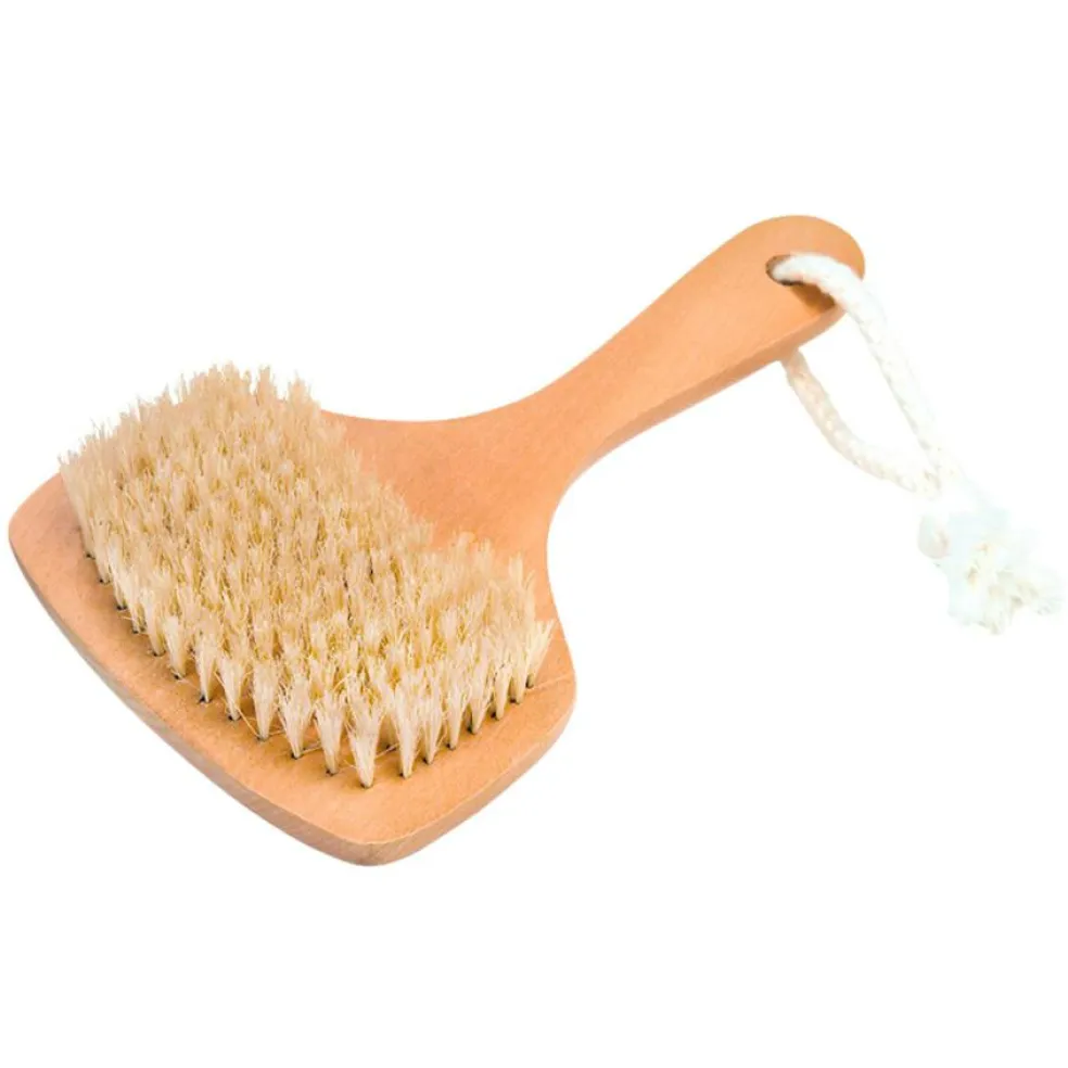Firkantet badebørste fra Croll & Denecke med svinehår og kort træskaft. Børsten bruges i badet til at skrubbe huden for at rense huden, eksfoliere huden, fjerne dødehudceller, stimulere blodcirkulationen og for at give en behagelig massage.