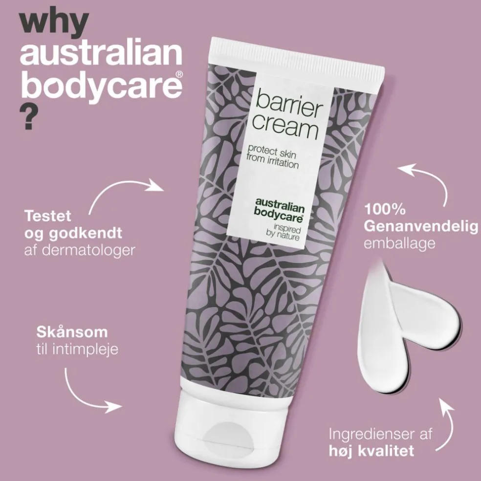 Produktet indeholder 100% naturlig Tea Tree Oil, som modvirker bakterier, så uønsket lugt i området samtidig minimeres.Barrierecremen kan bruges af alle hudtyper og er egnet til både mænd og kvinder.