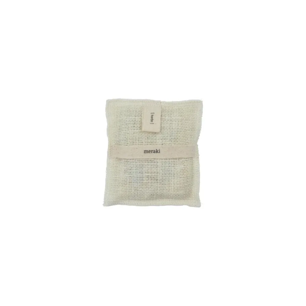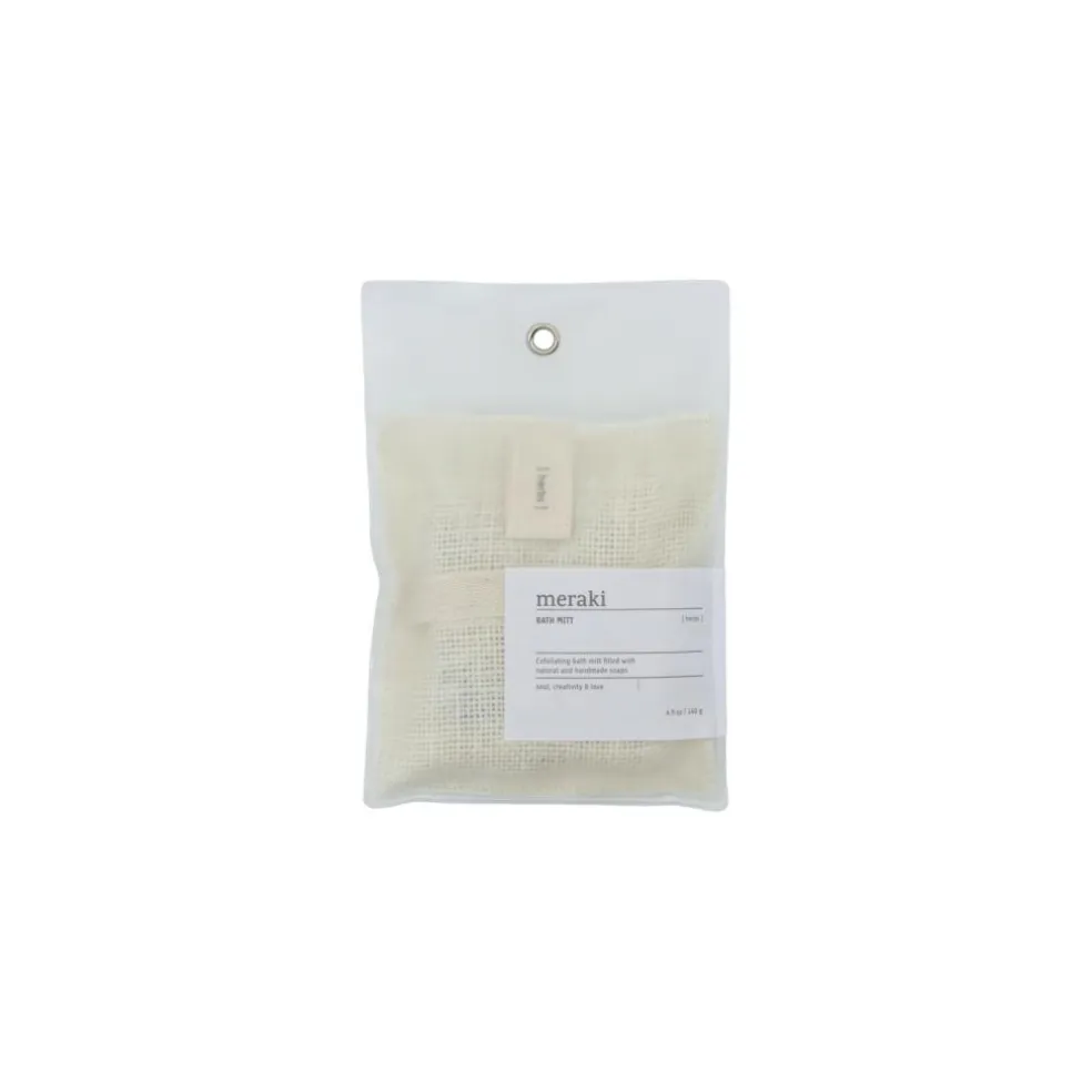Giv din hud en nænsom eksfoliering, mens du vasker den med denne lækre badehandske fra Meraki. Badehandsken er lavet af 100% Jute og er fyldt med mild, håndlavet sæbe, der skummer op, når du vasker kroppen. Sæben har en skøn duft af urter. Fugt badehandsken med vand, og vask huden i cirkulære bevægelser. Skyl grundigt med vand.