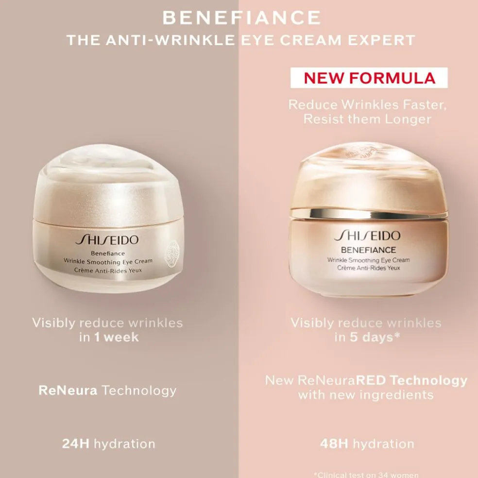 HURTIG OG LANGVARIG RESULTAT: På bare fem dage mente 93% af brugerne i SHISEIDO’s kliniske test, at rynkerne omkring øjnene var mindre synlige, mens 96% rapporterede, at de så resultater hurtigt, og 99% mente, at deres hud føltes blødere. Efter brug af øjencremen rapporterede 98% en reduktion i antallet af rynker. 96% så, at rynker i øjeområdet blev forebygget, og 97% rapporterede, at huden i øjeområdet så mere ungdommelig ud.