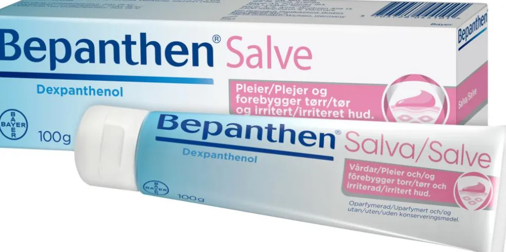 Bepanthen er velegnet til tør hud og læber, mindre hudirritationer, rød numse og ømme brystvorter.
