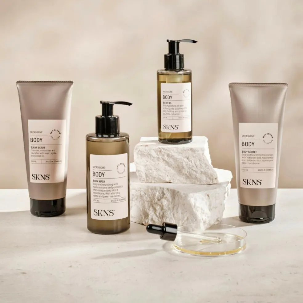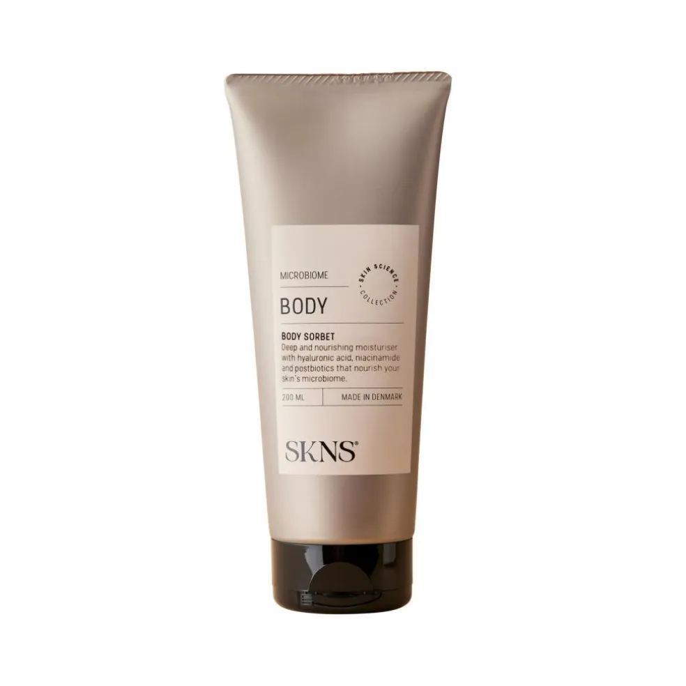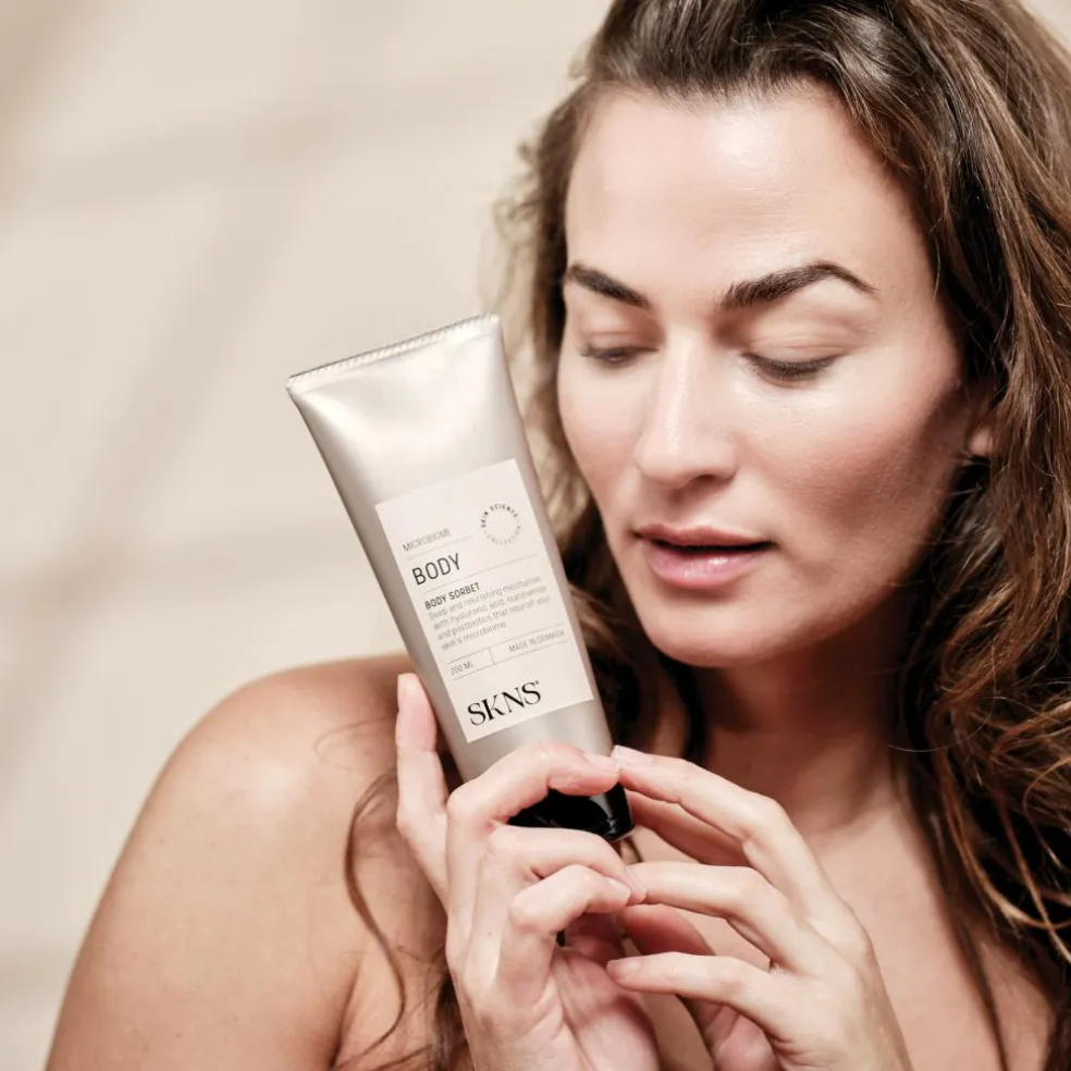 Dybdevirkende og nærende body sorbet med hyaluronsyre, niacinamid og postbiotika, der nærer din huds mikrobiom.