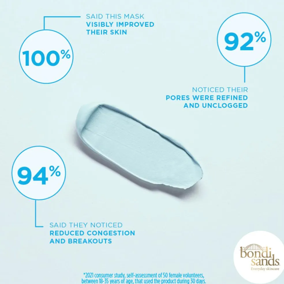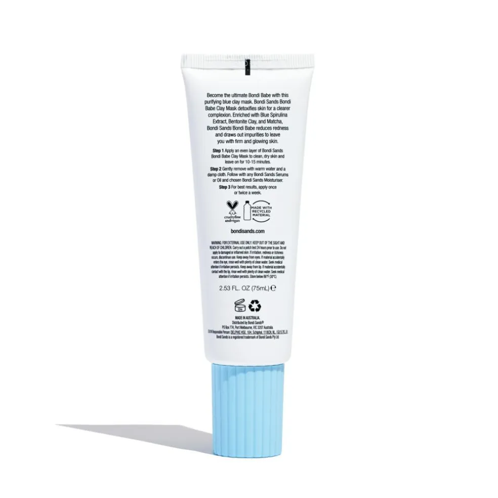 1: Påfør et jævnt lag Bondi Babe Clay Mask på ren og tør hud.