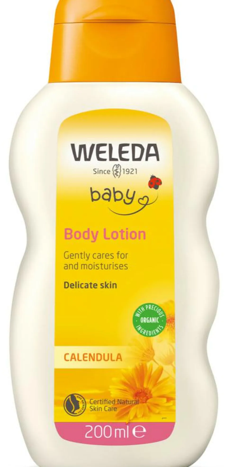 Mild og fugtgivende bodylotion til babyer.Kropslotion, der fugter og plejer børns sensitive hud. Mandelolie og økologisk sesamolie hjælper med at bevare dit barns hud blød og smidig og beskytter den mod fugttab. Ekstrakt af biodynamisk dyrket morgenfrue og økologisk dyrket kamille hjælper med at berolige og lindre huden. Dermatologisk testet. Perfekt til små og store børn.Mild, fugtgivende og beroligendeIdeel til børns sensitive hudUdviklet i samarbejde med jordemødre.