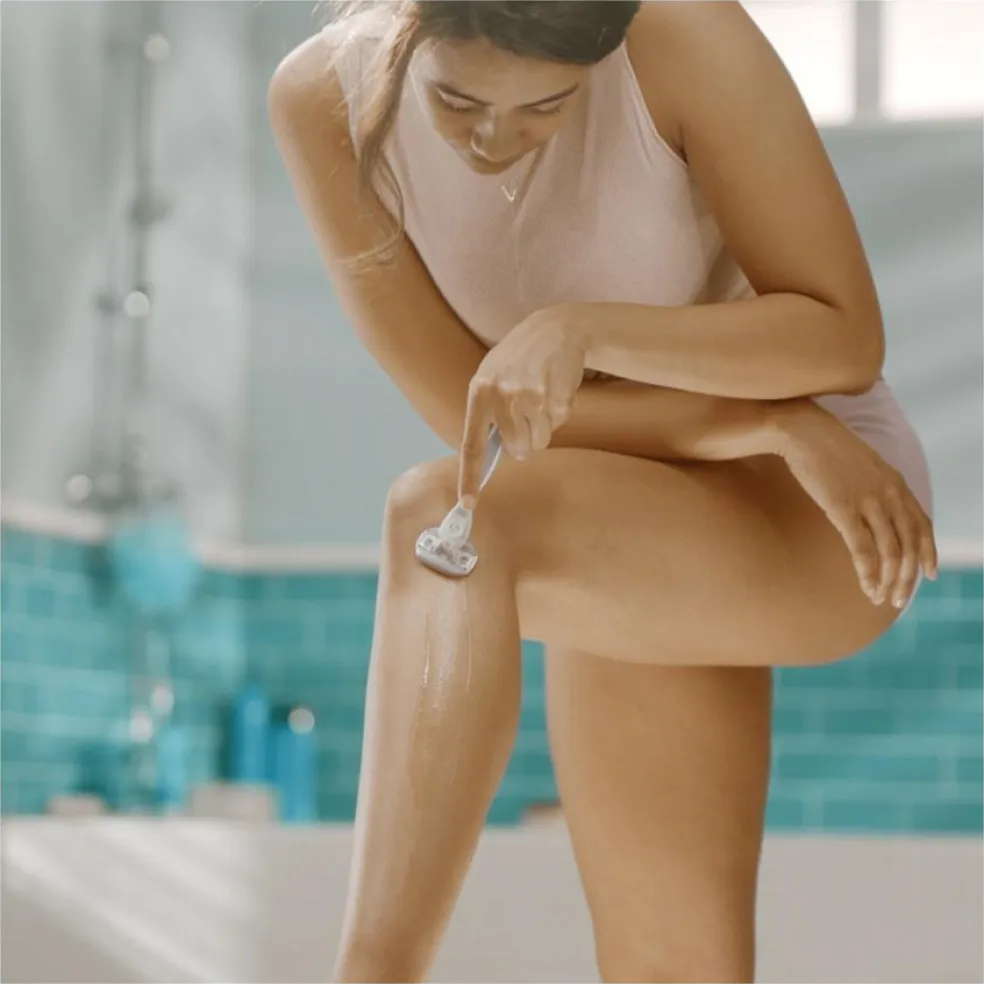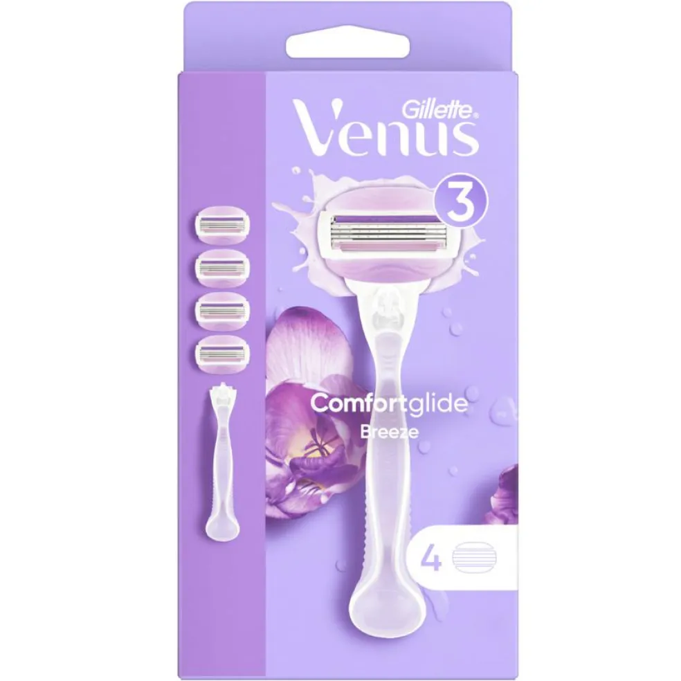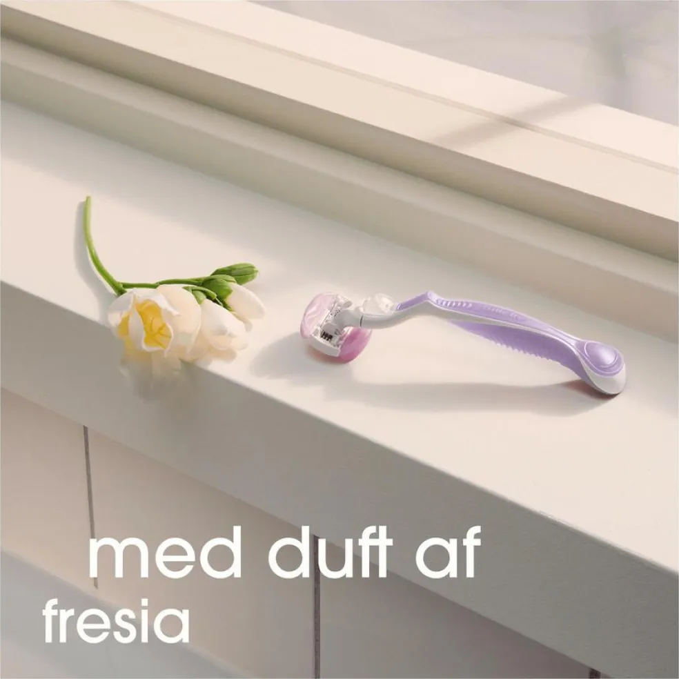 Venus-barberblade til kvinder er skabt efter kvindekroppen. Venus Comfortglide Breeze-barberskraber til kvinder har 3 blade til en blød og glat barbering. Barberbladene er forsynet med gelbarer, der frigiver bodylotion med en frisk duft og får skraberen til at glide nemt og behageligt. Med et bevægeligt design, der tilpasser sig efter kroppens konturer. Alle Venus-barberblade passer til alle Venus-skrabere (undtagen Simply Venus og Venus Pubic Hair and skin). GLAT & TÆT: Skraberen har 3 indbyggede blade, der sikrer en glat og tæt barbering, som holder i længden UBESVÆRET GLID: barberbladenes gelbarer er vandaktiverede og får hvert eneste strøg til at glide let) ERGONOMISK HÅNDTAG: designet med soft-grip-gel, der er behageligt at holde om, og fremstillet med 30% genbrugsplast HUDBESKYTTELSE: skraberens gelbarer frigiver et skønt skum med duft af freesia, som beskytter din hud mod rifter, sår og irritation DESIGN, DER TILPASSER SIG: skraberens bevægelige hoved sørger for præcis barbering på områder, der er svære at nå. Ingen underlige vinkler under barbering Alle Venus-barberblade passer til alle Venus-skrabere (undtagen Simply Venus og Venus Pubic Hair and skin)