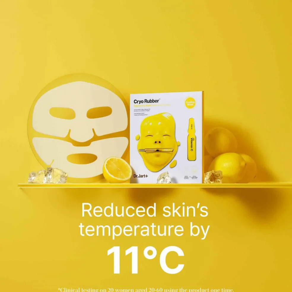 Cryo Rubber Brightening Mask fra Dr. Jart+ er en blød og fleksibel ansigtsmaske i to trin, der øjeblikkeligt øger glød og afkøler huden inspireret af Cryoterapi. Med ansigtsmasken hører også en højt koncentreret ampul, som er beriget med en blanding af niacinamid og C-vitamin. Cool, ikke?