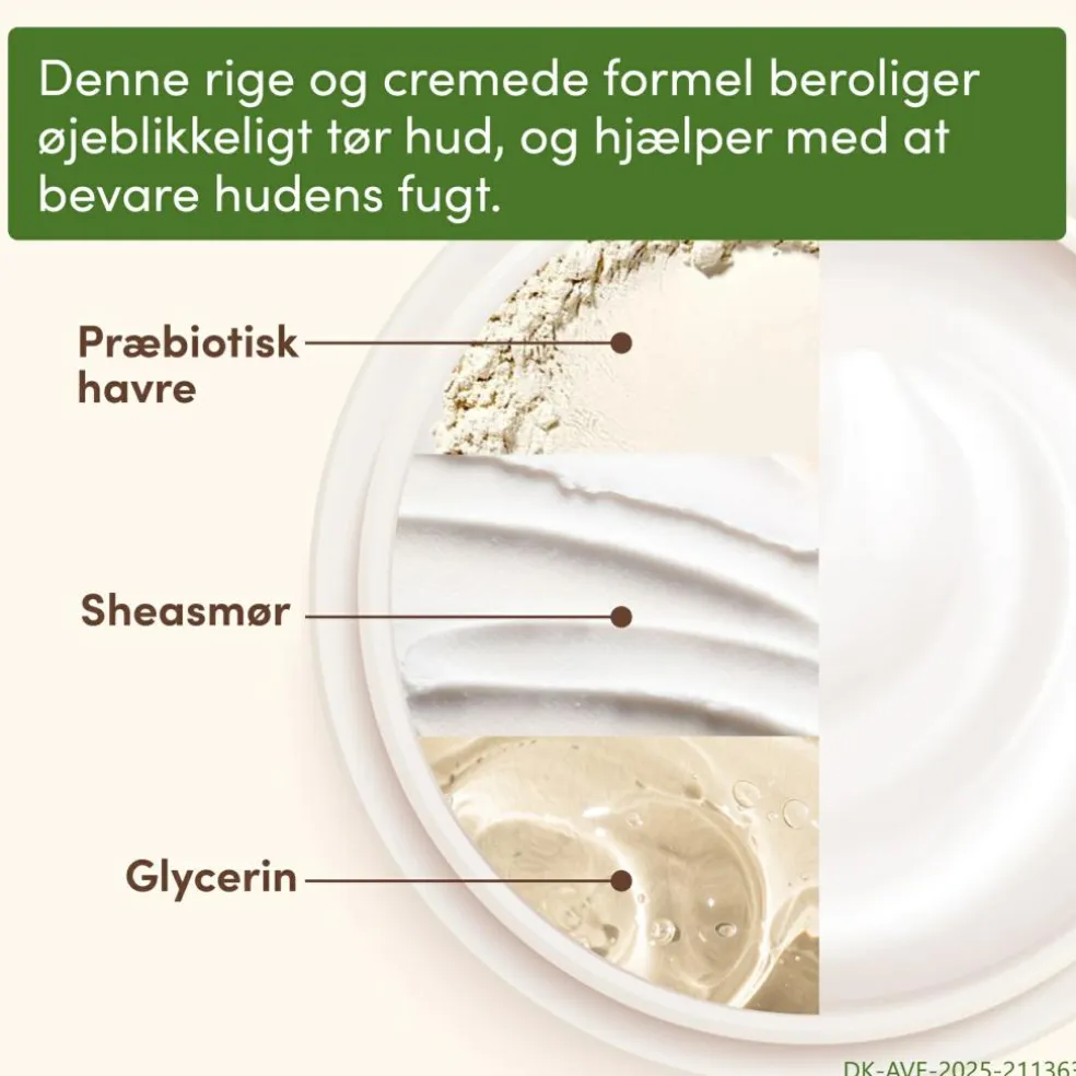 Formuleret med havresmør, en kombination af præbiotisk havre og sheasmør, beroliger denne rige og cremede formel øjeblikkeligt tør og irriteret hud.