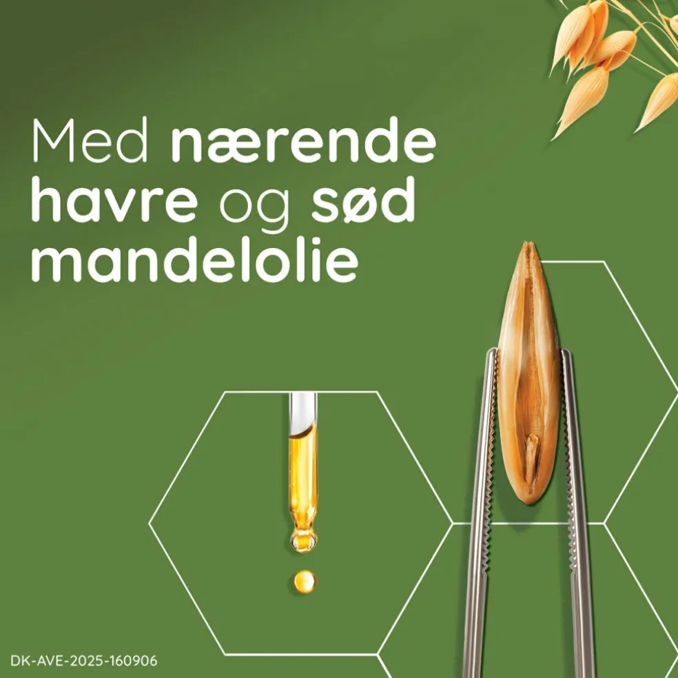 Klinisk bevist, at den nærer, blødgør og udglatter huden. Med beroligende havre og sød mandelolie.