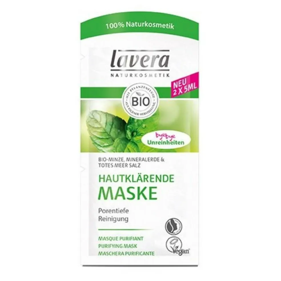 Pyrifing Mask er en intensiv rensning til renere hud. Lavera Purifying Mask indeholder økologisk mynte og salt fra Det Døde Hav, til at rense huden helt ned i porerne. Mineralerne absorberer blidt overskydende olie og efterlader en matterende og forfrisket hud. Regelmæssig brug hjælper med at forhindre bumser.Indeholder 2 x 5 ml – så der er til to behandlinger.