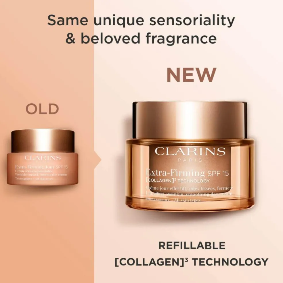 En ny generation af opstrammende dagcreme. Dens eksklusive*** [COLLAGEN]³ TECHNOLOGY er målrettet kollagen takket være dens kraftfulde trio af aktive ingredienser.
