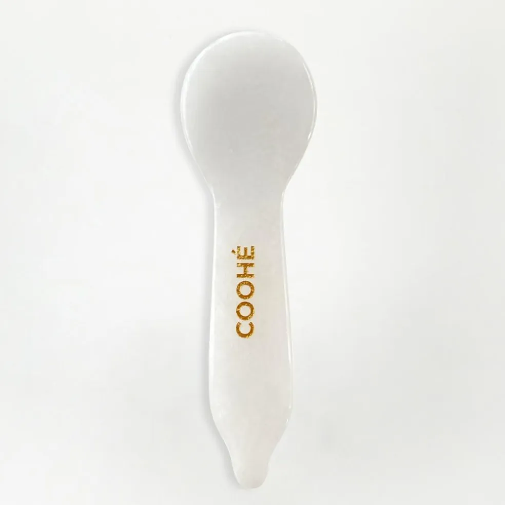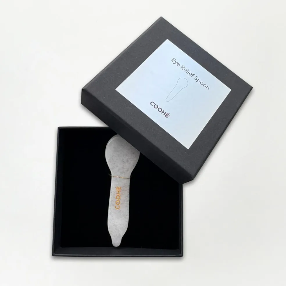 Eye Relief Gua Sha Ske er et luksuriøst og praktisk værktøj til øjenpleje, massage, ansigtsrefleksologi og energihealing. Fremstillet af 100% white jade, frigiver skeen positiv energi og giver en beroligende og forfriskende oplevelse, der supplerer din daglige hudplejerutine. Fordele: Reducerer mørke rander og hævelse: Brug den mindre, rundede kant til blidt at massere øjenområdet og fremme absorption af øjencreme. Afslapper og opfrisker: Placer skeen i køleskabet inden brug for en kølende effekt, der lindrer træthed og stimulerer blodcirkulationen omkring øjnene. Refleksologi og energihealing: Påfør let tryk på akupunkturpunkter eller triggerpunkter i ansigtet eller på kroppen for at åbne energibaner og fremme velvære. Lindrer spændinger og reducerer rynker: Brug skeens kant til forsigtigt at skrabe øjenbrynene og afslappe musklerne omkring øjnene. Brug: Påfør øjencreme eller olie-balm omkring øjnene. Massér blidt med den rundede kant af skeen i cirkulære bevægelser, indtil produktet absorberes. For ekstra opfriskning kan skeen opbevares i køleskabet inden brug. Rens værktøjet med en blød klud og opbevar det tørt efter brug.