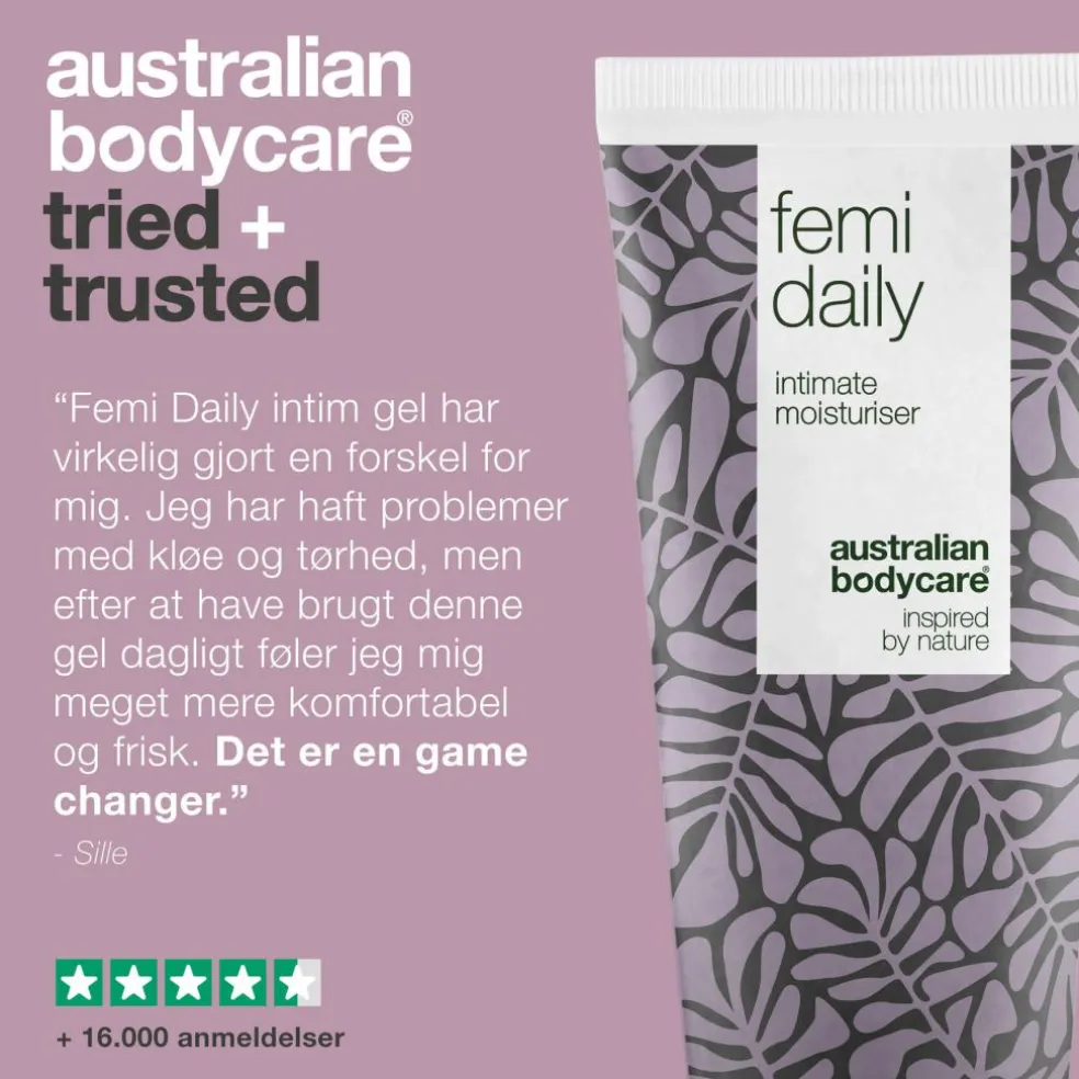 Femi Daily lindrer intime gener som kløe, uønsket lugt og tørhed omkring skeden og i det øvrige intimområde.