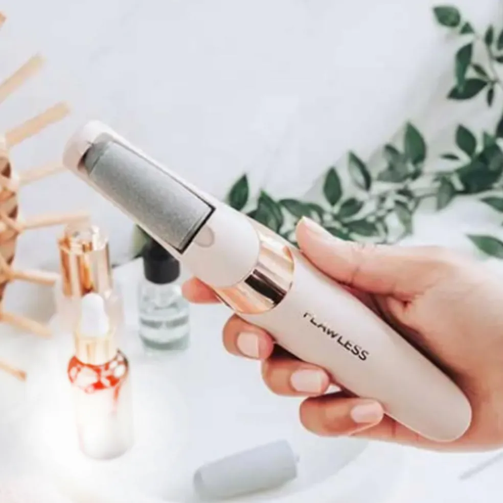 Flawless Pedi gør alt arbejdet – fjerner og udjævner hård hud, revnet tør hud og ru områder øjeblikkeligt og smertefrit.