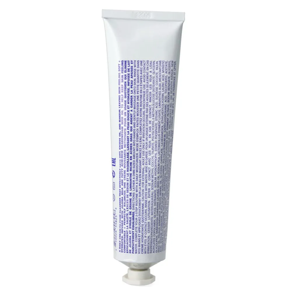 Creme-til-skum-teksturen renser dybt med blide overfladeaktive stoffer fra kokosnødder + ceramidrige glykolipider fra fermentering uden at fjerne hudens naturlige olier, og efterlader aldrig huden stram eller tør. Fyldt med lækker jojobamælk, fedtsyrerige næringsstoffer og nærende præbiotika, opretholder denne multitasking-rens hudens væsentlige hydreringsniveauer, så den føles behagelig + perfekt i balance. Ideel til dem med hud til den tørre side, men velegnet til alle hudtyper, især følsomme.