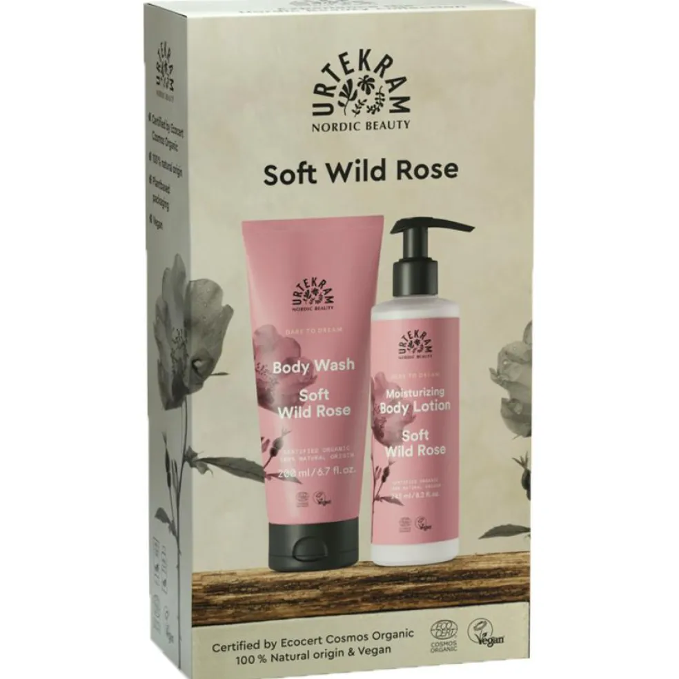 Gaveæske med to skønne produkter fra Urtekram Beauty Soft Wild Rose serien. Gaveæsken består af Soft Wild Rose body lotion og body wash, som begge indeholder nærende og fugtgivende ingredienser som aloe vera, hyaluronsyre og glycerin. Nyd den milde duft af vilde roser i fuldt flor. Perfekt som værtindegave eller forkælelse til dig selv. Økologisk certificeret af Ecocert COSMOS Organic, vegansk, dansk produceret og med ingredienser af 100% naturlig oprindelse.