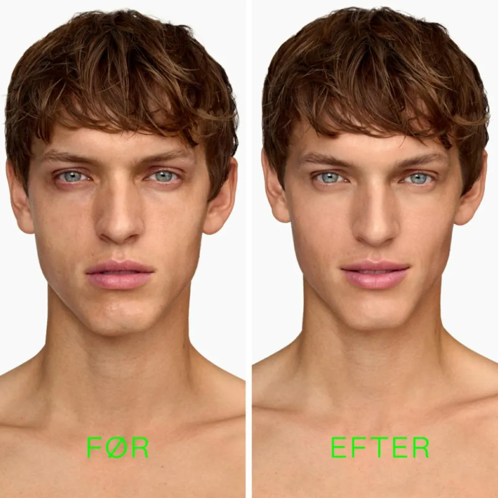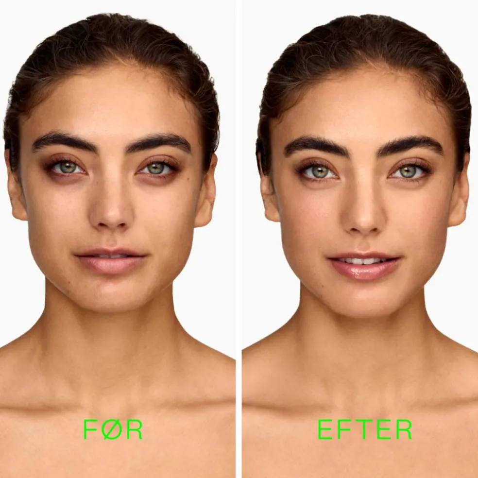 - Step 1: Afsæt en lille klat på begge kinder, pande og en lille klat på næsen. Smør forsigtigt produktet rundt i ansigtet. SMØR IKKE DIREKTE I SKÆG OG ØJENBRYN!