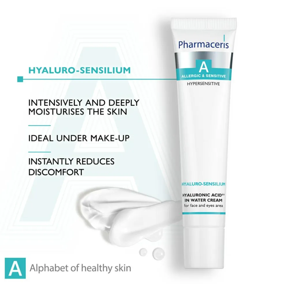 Pharmaceris Hyaluro-Sensilium hyaluronsyre creme anvendes på rent ansigt, øjenområde, nakke og hals både om morgenen og om aftenen. følg op med en intensiv hydrerende ansigtsmask og en ansigtscreme. Cremen er en ideel base for make-up.