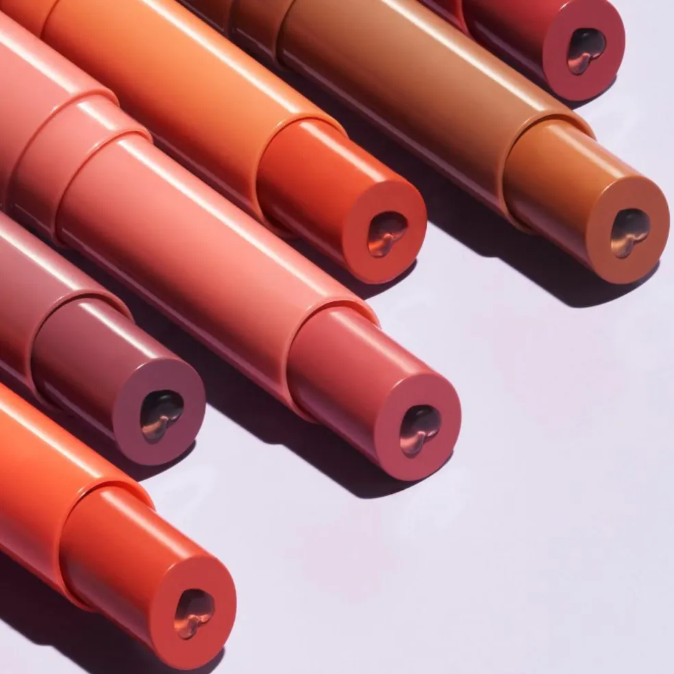 En 2-i-1 smeltende læbepomade, der kombinerer en ydre skal med et strejf af farve og en indre hjerteformet kerne spækket med hudplejende ingredienser.