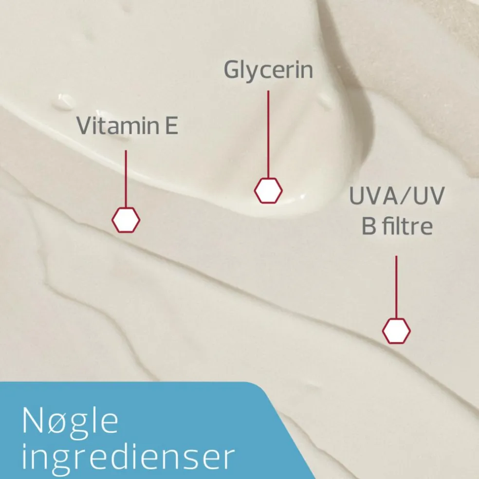 Denne fugtighedsgivende ansigtscreme, der er formuleret med bredspektrede UVB/UVA-filtre, antioxidant E-vitamin og blødgørende ingredienser, beskytter huden og styrker hudbarrieren.